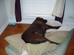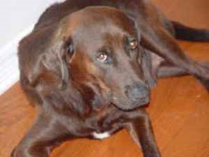 We didn’t need a big dog, we already had two big dogs, but that brown lab was the saddest animal I’d ever seen, and I couldn’t walk away. I did at first, I left the pet store where the rescue group was set up, drove home, but she wouldn’t leave me alone. She was found at an abandoned house, her owners had moved and left her alone with no food or water, with a small pup from her last litter and she was pregnant again. The poor dog had been bred nearly to death, practically crippled from being kept in a small crate and she had heartworms. A rescuer had pulled her from a county shelter on the day she and her pup were to be euthanized, brought her home and set up a place for her to have the new puppies. Soon the puppies were old enough and all were adopted, but no one had showed interest in this big sad girl. Her story stayed with me. I gave up and made a call.