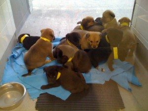 The coordinator set up a volunteer schedule so that there would be someone at the house with the pups from very early in the morning to very late at night and I agreed to mornings on the weekdays. If you’ve ever had a puppy you know how much work one can be, now multiply that by 13 puppies.
